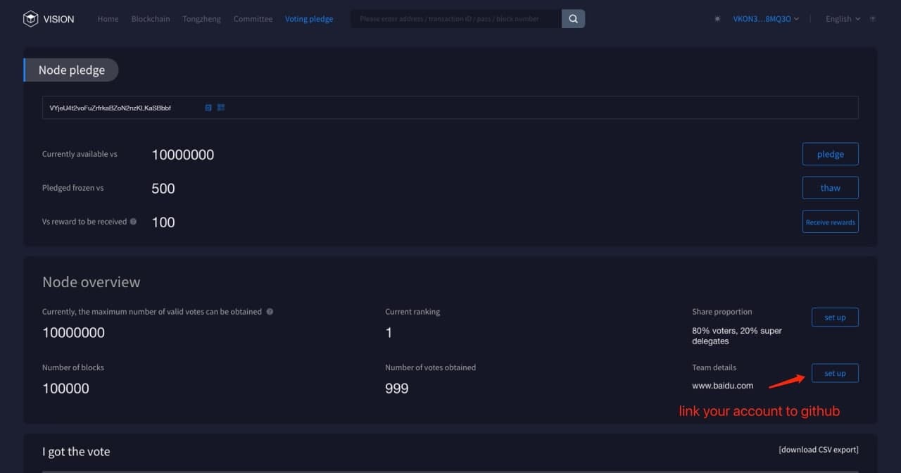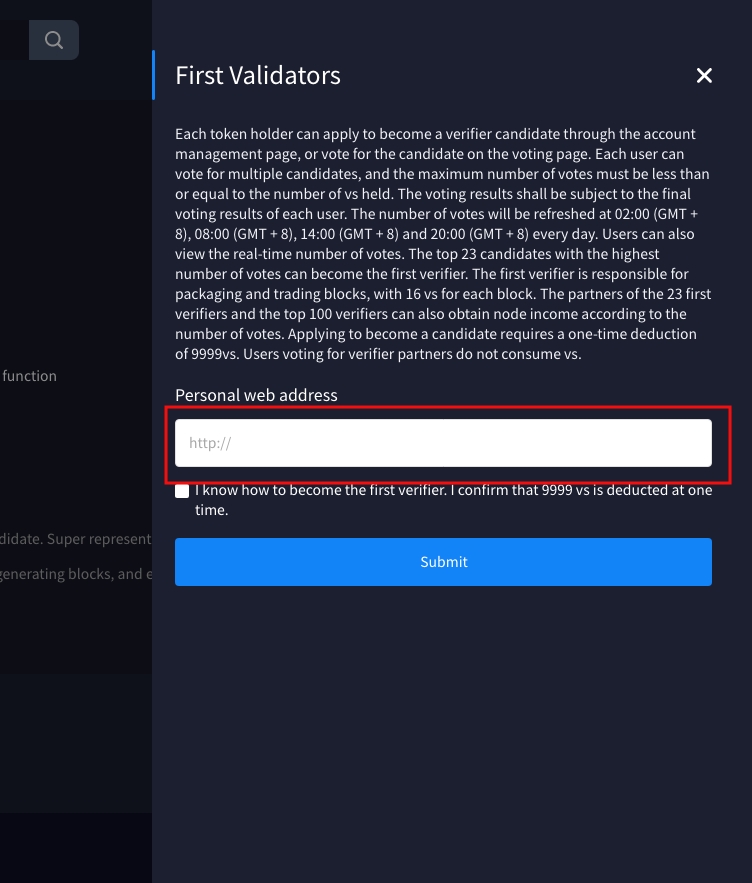 Note: When users apply to become FV candidates, they need to pay 2000 VS.