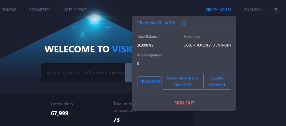 We support vtimes app & metaMask to quick link, you can chek you balance, and find all the transcations on visionscan.